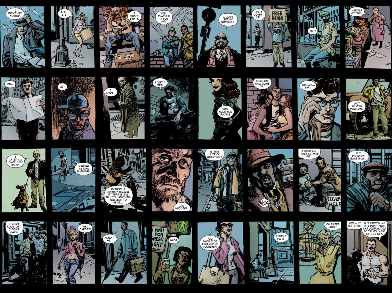 A Nova York retratada também está cheia de detalhes que podem passar despercebidos, com observações curiosas sobre o futuro próximo. A polícia vigia de forma insistente seus cidadãos; a mídia impressa, incluindo o Clarim Diário, está à beira do fim; super-heróis são cada vez mais individualistas: o mundo, definitivamente, não se transforma em um lugar melhor. Para histórias urbanas como esta, Bendis dificilmente erra a mão.