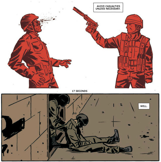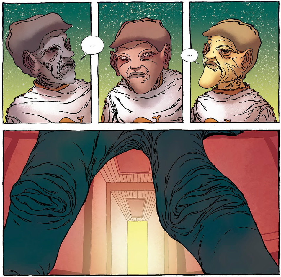 A curta passagem de Warren Ellis pela atual fase do Cavaleiro da Lua, publicada por aqui em dezembro pela Panini, foi um sopro de inventividade: cada um dos seis números era uma história fechada, com diálogos e exposição reduzidos ao mínimo para que as tramas fossem contadas quase que exclusivamente pela arte frenética de Declan Shalvey. O herói enfrenta fantasmas punks e entra em uma viagem alucinógena em meio a corpos decompostos – apenas dois exemplos desse delírio maravilhoso escrito por Ellis.