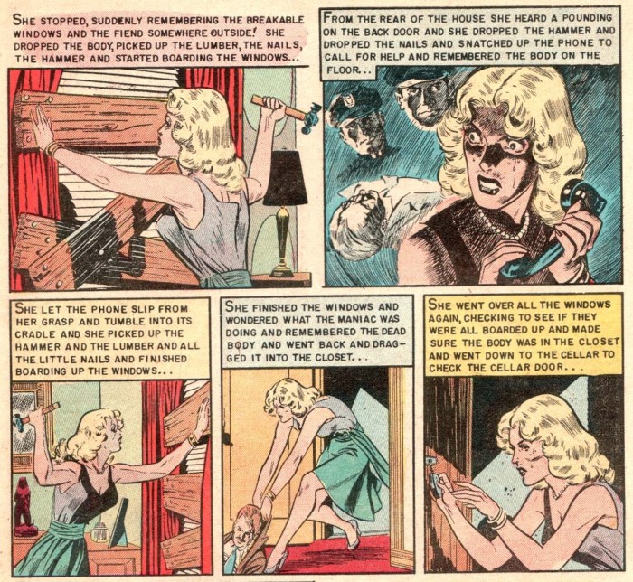 Tem mais: o roteiro de A Noite dos Mortos-Vivos pega emprestado vários elementos de uma história específica. Publicada em Vault Of Horror #35 e escrita/desenhada pelo inigualável Johnny Craig, And All Through The House tem uma mulher presa numa casa, sendo rodeada por um perigo querendo entrar a qualquer custo. Pois vejamos: