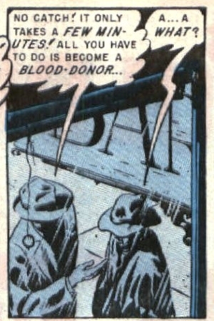 Blood Brothers (Shock SuspenStories #13, fevereiro de 1954), com arte de Wally Wood, denuncia o intolerante. Um supremacista branco passa a molestar psicologicamente o vizinho, cuja avó é afrodescendente, só para descobrir mais tarde que o sangue de um doador negro salvou-lhe a vida quando criança.