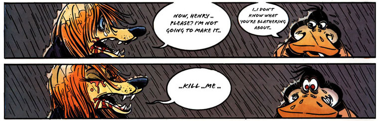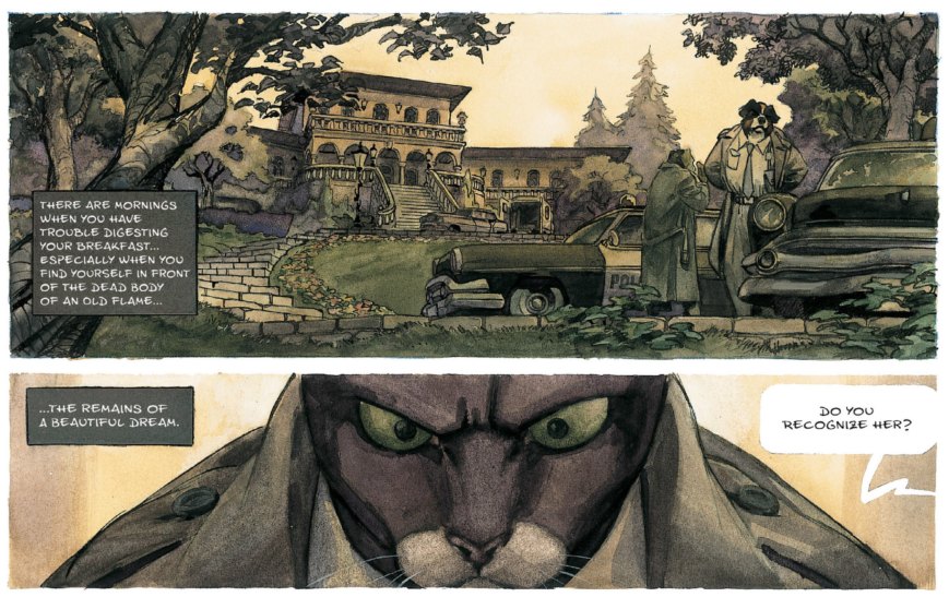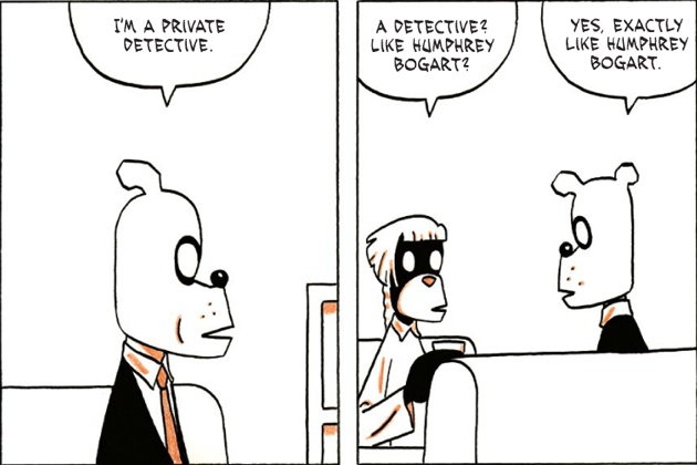 Nos quadrinhos, fica mais fácil deixar a figura humana de lado – até porque deve ser irresistível desenhar animais envolvidos na criminalidade. Curiosamente, europeus são especialistas nisso. Em Canardo, o belga Benoit Sokal (falecido este ano) escreveu as aventuras de um pato detetive e beberrão, cheias de humor cínico e autopiedade. A série começou a ser publicada na revista À Suivre no final dos anos 1970, ganhando o formato de álbum algum tempo depois – ao todo, são mais de vinte volumes lançados. Blacksad, dos espanhois Juan Días Canales e Juanjo Guarnido, começa bastante reverente à típica trama do noir, seguindo à risca os plot twists e o desenvolvimento de personagens – o próprio gato protagonista que dá nome ao título se torna uma versão genérica dos Philip Marlowes do passado. A partir do segundo álbum, as coisas melhoram bastante: o aspecto social entra na parada (racismo, Macarthismo) e John Blacksad ganha profundidade trágica. As soberbas ilustrações à la Disney de Guarnido, com uma das melhores representações de luz das HQs mundiais, deixam tudo mais intenso. O norueguês Jason é outro que não poderia deixar seus cachorros, pássaros e felinos longe de investigações, traições e interesses escusos. Lost Cat faz da solidão e da procura por uma alma irmã, assuntos tão comuns em seus trabalhos, parte central da ambientação. O final do livro, meio delírio, meio ficção científica, fecha de forma intimista mais uma obra-prima desse artista genial.