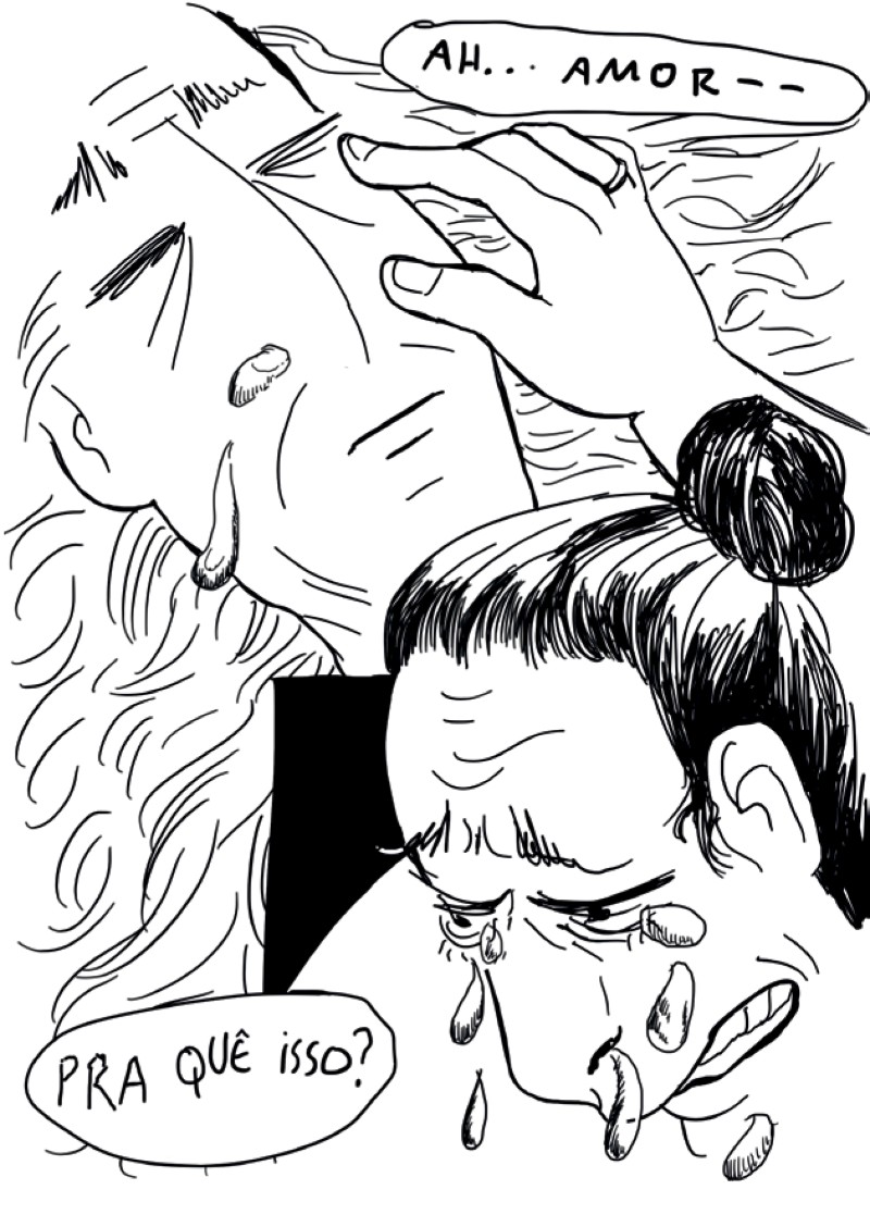 O inesperado momento gore que nos leva à conclusão da HQ surge como perfeita metáfora do impacto causado pela separação (seja a que chega de supetão ou a aguardada ao longo de meses em um hospital). O resultado da morte é apenas dor: física, psicológica, que corta fundo e não faz sentido. Lalo traduz esse amálgama de sentimentos em uma cena à beira do surreal, cheia de rabiscos disformes. Pelo menos, a necessidade de se despedir formalmente do corpo – está aí uma tradição milenar que talvez jamais se torne obsoleta – atenua um pouco o tormento dos personagens.