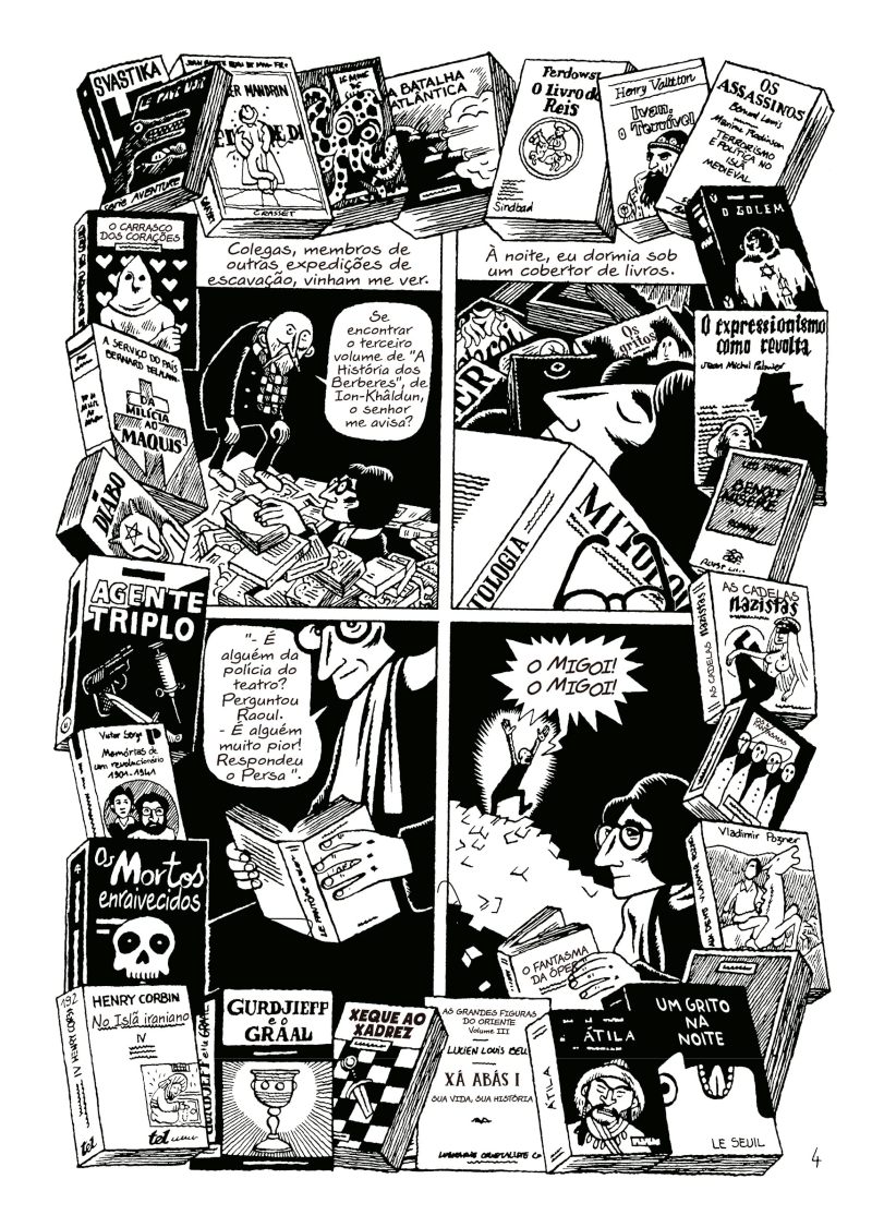 Ano passado viu mais obras de dois fundamentais artistas contemporâneos, ambas pela Mino. André, o Gigante, do estadunidense Box Brown, narra a vida de André Roussimoff, atleta francês superpopular da luta livre nos anos 1970 e 1980. É um conto cheio de melancolia sobre aceitar as próprias imperfeições, no estilo direto e funcional de Brown. Ei, Espera…, do norueguês Jason, deve ser seu livro mais triste, pois comenta as implicações da morte sob o ponto de vista de uma criança. Tem uma cena específica de dilacerar o coração, a qual, nas mãos de um artista menos hábil, com certeza penderia para o sensacionalismo. Mas Jason nunca deixa de lado seu tradicional minimalismo no desenho e na construção da página, alcançando grandes resultados emocionais – com ele, menos é mais. Da mesma forma, A Espera (Pipoca & Nanquim), da sul-coreana Keum Suk Gendry-Kim, consegue extrair reflexão de um enredo pesado no quesito drama. Baseado na trajetória da própria mãe, Gendry-Kim relata a separação de um sem número de famílias causada pela Guerra da Coreia. Grama, seu quadrinho anterior, revelou sua sensibilidade impressionista; agora, o estilo mudou, ficou mais dinâmico, com maior uso de sobreposição de imagens e de espaço negativo. Incidentes da Noite (Veneta), do francês David B., mexe com sentimentos diferentes: mergulha o leitor num mundo surreal de mistério, aventura e delírio pelas livrarias de Paris, misturando lendas urbanas com história oficial e literatura. A edição reúne todos os capítulos lançados pelo autor ao longo dos anos, embora a trama não tenha sido finalizada até hoje (e nem se sabe quando B. retomará o trabalho…). Isso não importa, pois essa viagem criativa não deve ser encarada com a frieza estrutural dos manuais de roteiro.