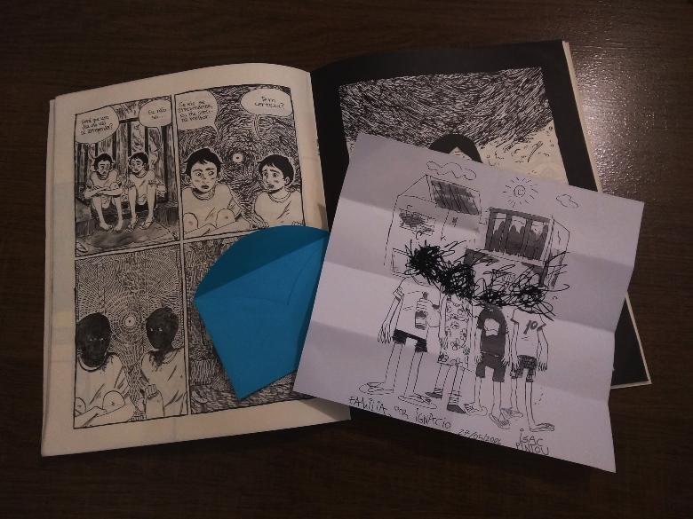 Até Alan Moore e Kevin O’Neill encartaram objetos nos volumes encadernados de A Liga Extraordinária, incluindo um jogo de tabuleiro em um dos livros. Contudo, dois gibis independentes nacionais mudam a proposta ao trazerem coisas intrínsecas ao enredo. Em Me Leve Quando Sair, a protagonista visita uma pousada em Paraty, local onde refletirá sobre a relação com a família. O espaço é tão relevante para essa jornada que Jéssica Groke imprimiu um cartão de negócios com informações (fictícias) da pousada. Já Dieferson Trindade alcança ainda mais impacto emocional. Afronta abre com um desenho fofo feito por um dos personagens – o filho mais novo de um lar rachado pelo alcoolismo do pai –, mostrando toda a família feliz num dia de sol. No fim do quadrinho, o leitor encontra, em um pequeno envelope, uma reprodução desse desenho, mas os rostos estão todos rabiscados furiosamente. É a tradução visual de uma criança vivendo na linha tênue entre amor, ódio e desesperança.