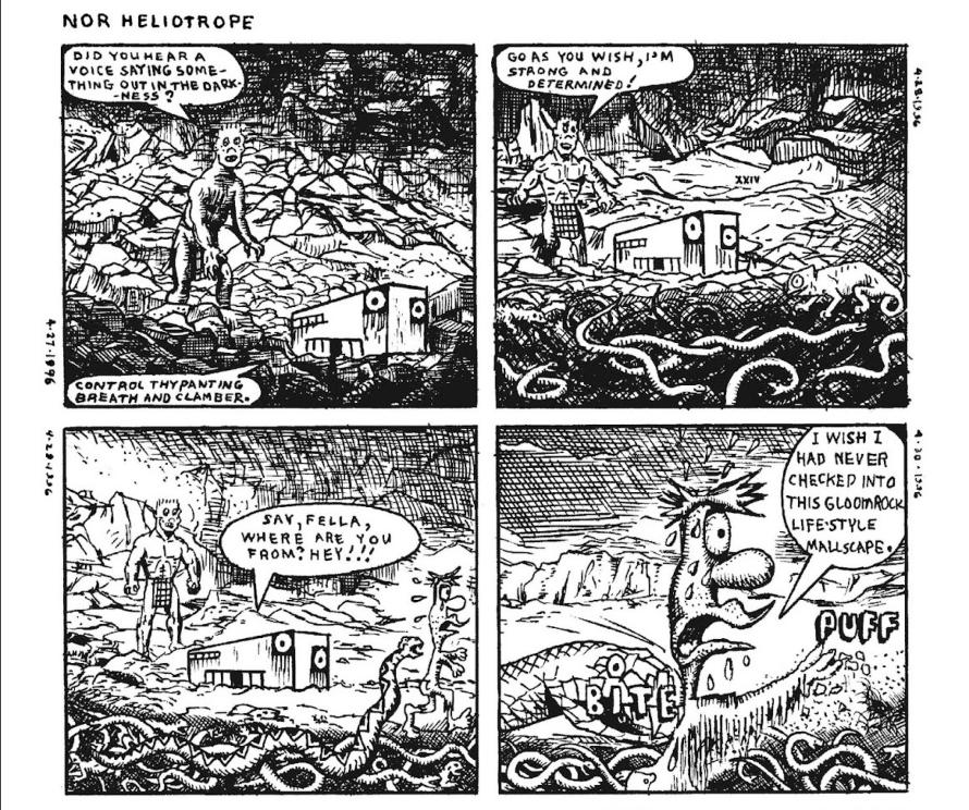 Obviamente este não é o primeiro gibi a retratar o reino do diabo – no entanto, deve ser o mais autoral. Gary Panter chega perto em Jimbo’s Inferno, uma adaptação da obra de Dante no inconfundível estilo underground do autor, no qual o limbo é um shopping center em Los Angeles. Apesar da criatividade, as paisagens mais parecem um cenário pós-apocalíptico à la Mad Max.