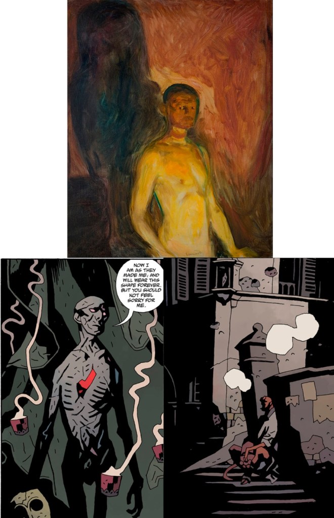 Há espaço para a influência (direta ou indireta) de movimentos modernos, como o Simbolismo do norueguês Edvard Munch. A carga psicológica do quadro Autorretrato no Inferno (abaixo) transparece por todo o gibi, no qual os personagens, muitas vezes, mais parecem espectros sem rumo.