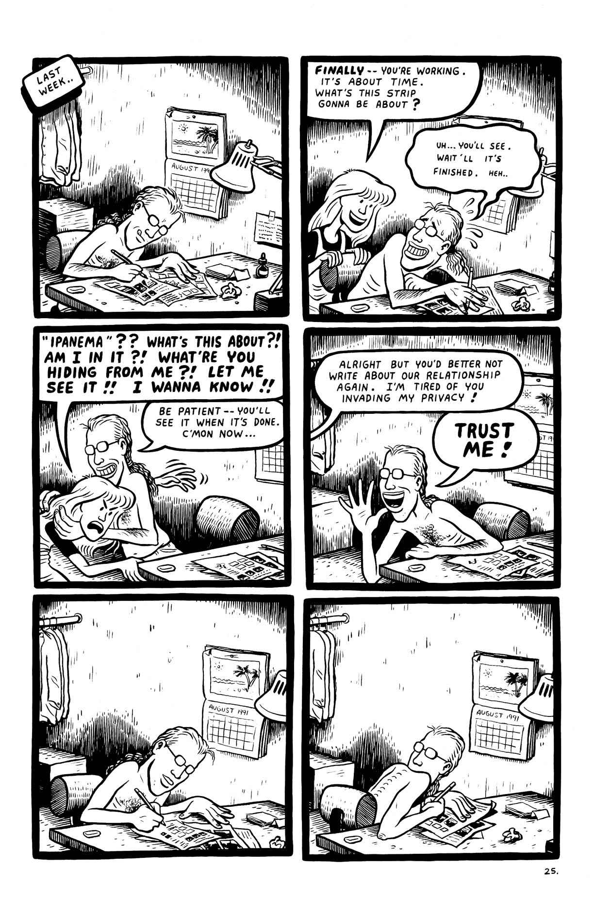 Ele é um boy dodói noventista, sem dinheiro e paranoico. Acredita ser a última bolacha do pacote ao mesmo tempo que pragueja sobre como a vida é injusta. Vomita virtudes num quadro da página para, no próximo, contradizê-las completamente. E tudo isso vira ouro com o cartooning de Matt. Não sei se existe uma palavra em português que traduza o escopo desse termo em inglês, mas dá para explicá-lo como a capacidade de narrar com fluidez e clareza, aliada a um desenho cujo traço expressivo transborda carisma.