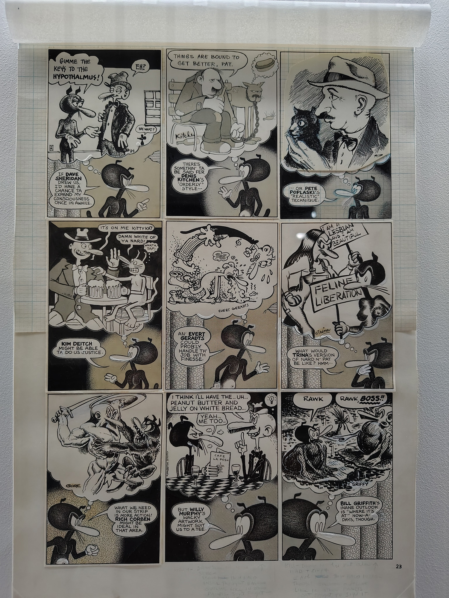 Página de Nard ‘n Pat com desenhos de Trina Robbins, Bill Griffith, Kim Deitch e outros