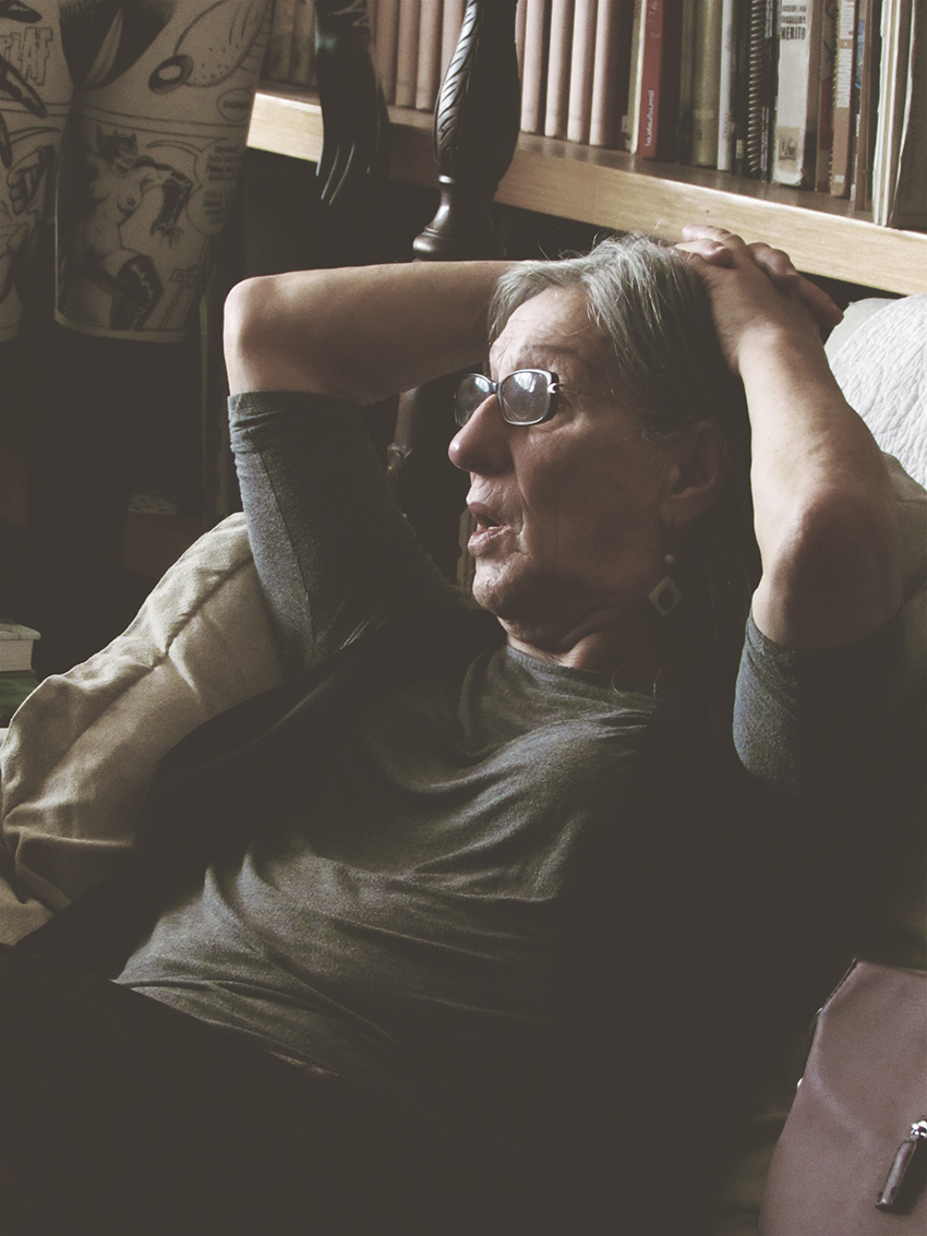 Laerte: Eu fiquei encanada em dois momentos, com histórias do Paulo Caruso. Ele fez uma HQ em que uma mulher era abduzida por um disco voador e o alienígena era um cafajeste, queria comer ela. E o cara joga a moça lá de cima e ela cai gritando “seu filho da puta!”, meio pelada [risos]. E teve outra com Deus fumando maconha. Eu ficava pensando que a gente não devia publicar aquilo, mas não me lembro de ter tomado algum tipo de atitude concreta pra isso.