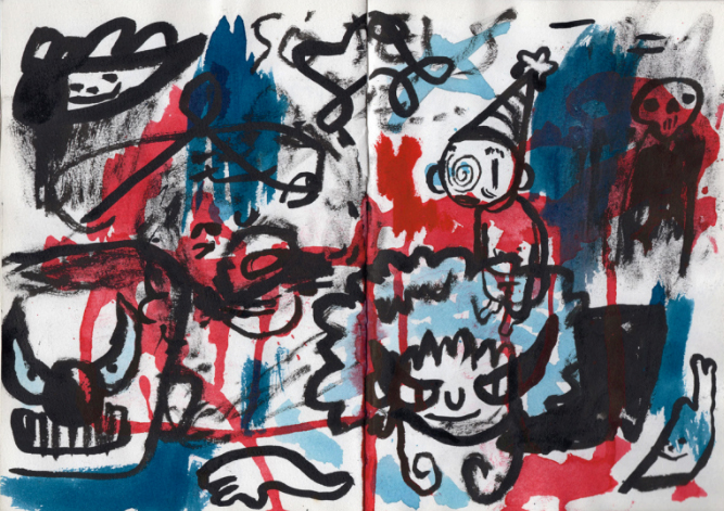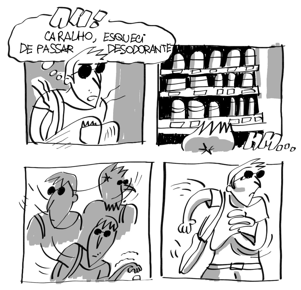 Adolescente prodígio, assim como os irmãos Ramos foram um dia, Sebastião Dojcsar surpreende pela quantidade de trabalho que já colocou na rua: a trilogia de zines Corpo de Tinta (uma distopia em que o pixo salva o dia), a série Bueiro (compilando desenhos, HQs, colagens e abstrações) e a graphic novel de cem páginas Beto e o Interlux (publicada pelo selo Pé-de-Cabra, com crítica minha aqui). Isso sem falar na capacidade de empreendedor: sua minieditora, a Piranhas, lança artistas parceiros. Parece muita coisa, e é – ainda mais se levarmos em conta que Dojcsar tem nem dezoito anos de idade. Imagina a quantidade de gibi que o rapaz terá produzido daqui a uma década?