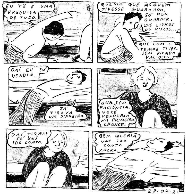 Ponta de lança de uma geração de artistas nortistas que, com cada vez mais força, se faz presente na cena independente do País, Karipola trouxe vitalidade para a conjuntura atual do “conteúdo no formato de quadrinho”, feito para consumo imediato e esquecimento eterno. Sua HQ, por vezes, caminha entre cenas e comentários que não fariam falta caso ficassem de fora – mas, no fim das contas, são exatamente o que elevam o livro. Em tempos de quadrinho utilitário, feito para o compartilhamento nos stories, que ela continue pensando obras antiutilitaristas como essa.