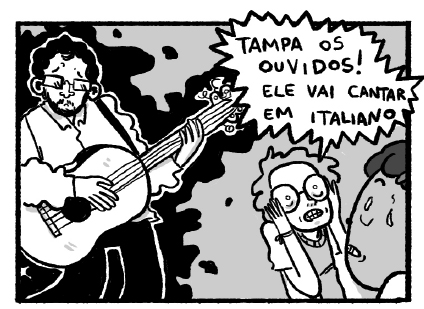 A produção de Mariana ainda não é extensa: além dos sapos, tive contato com apenas uma história dela, feita para a antologia Encrenca – Vol. 2, da Encrenca Coletiva (selo voltado para gibis de mulheres e pessoas trans). Numa única página, ela constrói um conto hilário, com ritmo perfeito para a piada revelada no último quadro, que desnuda a hipocrisia dos papéis sociais quando o assunto é sexo. Apesar da pequena amostra de suas habilidades, a artista apresentou uma visão instigante de como enxerga a mídia da qual faz parte.