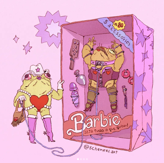 Se Kainã Lacerda talvez fosse o único quadrinista brasileiro a desenhar atos libidinosos envolvendo animais antropomorfizados, agora não está sozinho na empreitada. Marina Schenkel imaginou sapos fetichistas amantes de BDSM para seu livro Love can hurt, uma espécie de estudo sobre o desejo humano protagonizado por anfíbios, desenhados com diferentes técnicas e gradação de cores.