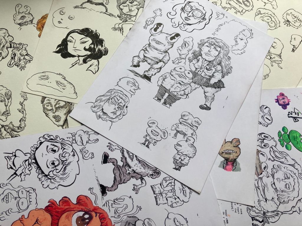 Eu acho que eu gosto de, primeiro, desenhar e, em segundo, de fazer quadrinho, sabe? Eu tenho alguns amigos que só desenham pra fazer quadrinho – acho isso insano. Gosto muito de ficar rabiscando, doodling. Às vezes fazer na folha de papel é até melhor, porque no sketchbook você pode ter muito preciosismo, “não vou deixar o meu sketchbook feio”. Tenho essa coisa meio foda-se de “vou desenhar qualquer coisa aqui só pra me distrair”, enquanto ouço música ou podcast.