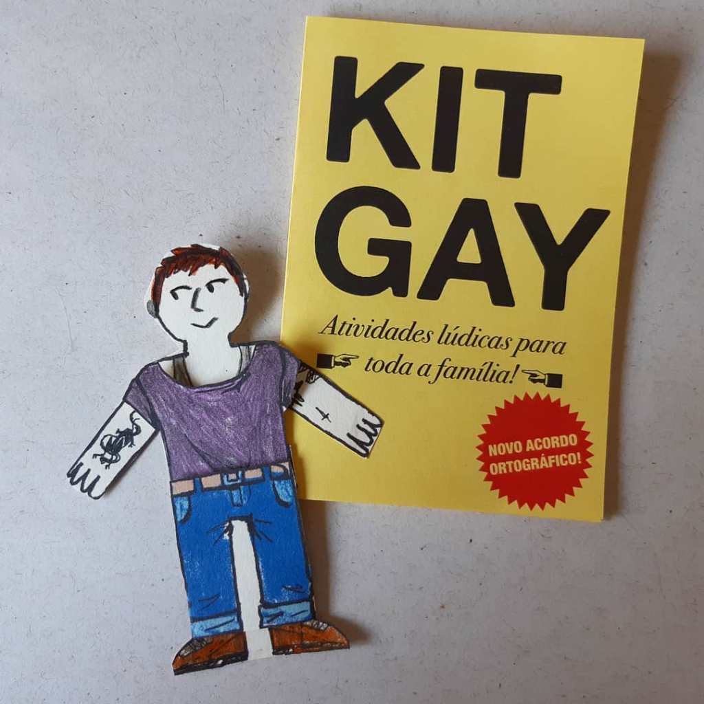 Eu vou ser bem sincero sobre a versão livro: não gosto muito, prefiro o zine. Talvez o livro não tenha o aspecto lúdico do zine. Ficou interessante pela questão visual, mas o projeto poderia muito bem não ser um quadrinho. Parece mais apropriado pra um manual mesmo, uma cartilha pra ser apresentada em escolas. Eu não sei se tô falando maluquice ou não, mas é bem claro pra mim que essa obra é mais contida do que outras suas na questão forma e até na abordagem do conteúdo. Faz sentido o que falei? Como é a sua relação com a versão livro do Kit gay?